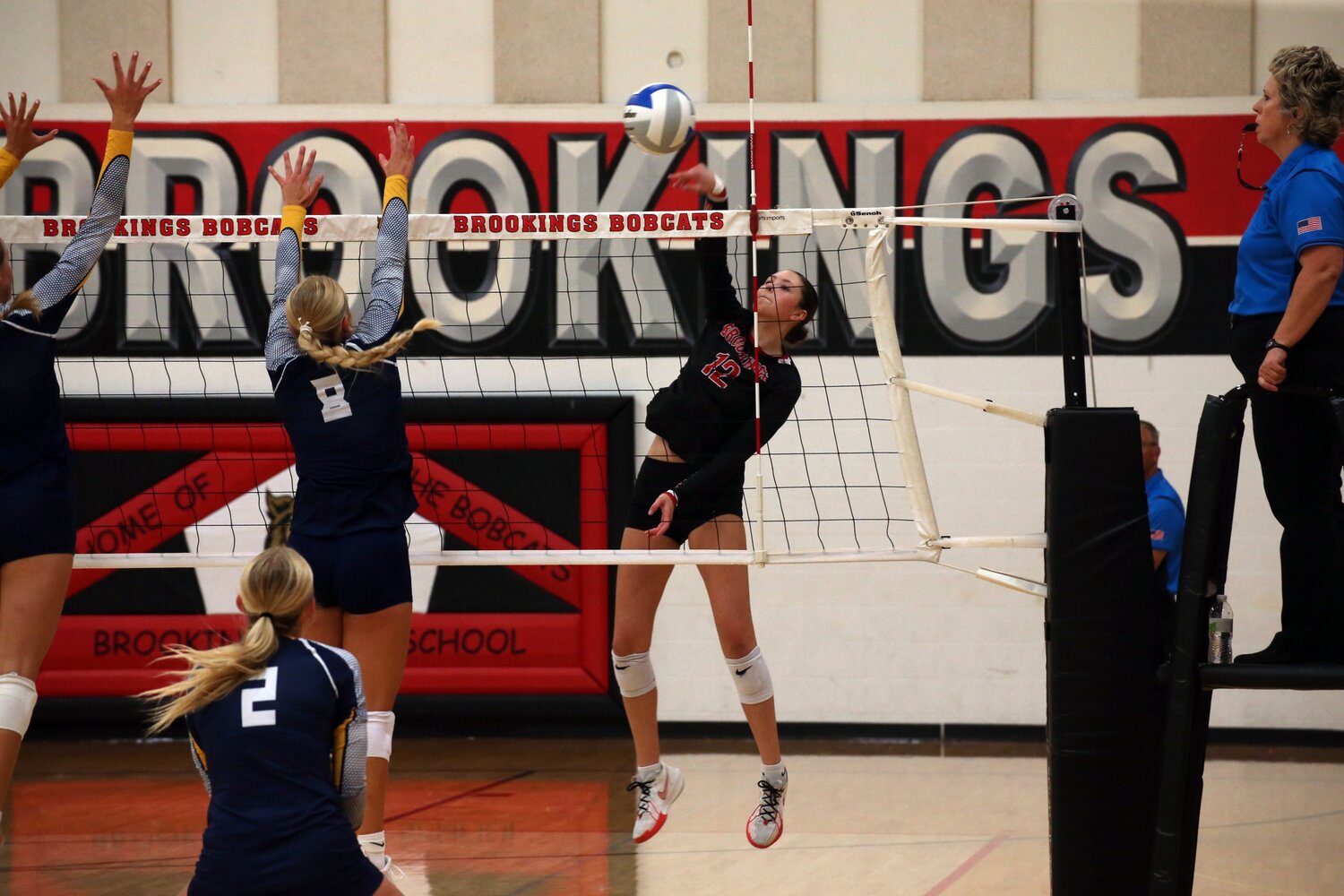 The Brookings volleyball team snapped a four-game losing streak on Tuesday night as the Bobcats swept Tea Area at Brookings High School.