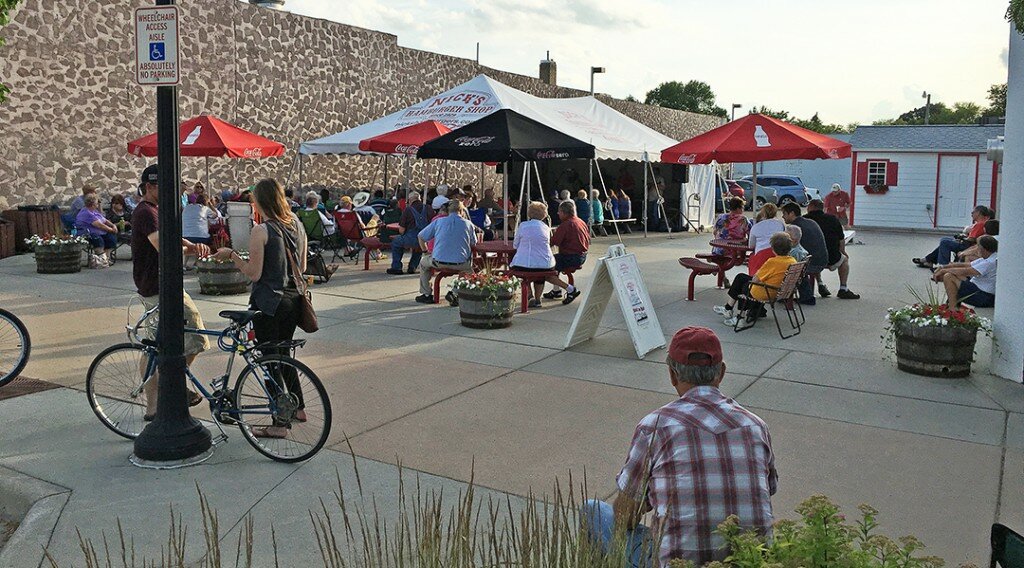 Courtesy photo: On a warm summer Wednesday, Brookings area residents gather for Music on Main, downtown near Nick’s Hamburger Shop. Todd Fergen, owner and operator of Nick’s, said that because of the prohibitive cost of licensing, the live local entertainment will not be returning. Music on Main was started by Fergen’s father, the late Dick Fergen, about five or six years ago.
