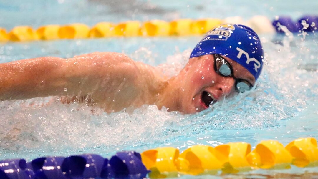 A Watertown native, Kranz won a combined three individual races in a pair of duals Jan. 17 against St. Cloud State and Jan. 18 versus South Dakota. He claimed the 100-yard freestyle in both duals, clocking a winning time of 46.30 seconds against SCSU, followed by placing first the next day in 46.62 seconds. Kranz added an individual victory in the 200 freestyle (1:42.53) against USD and also saw the anchor leg of the 400 freestyle relay, which posted a pool-record time of 3:05.90 to seal the Jackrabbits’ dual victory.