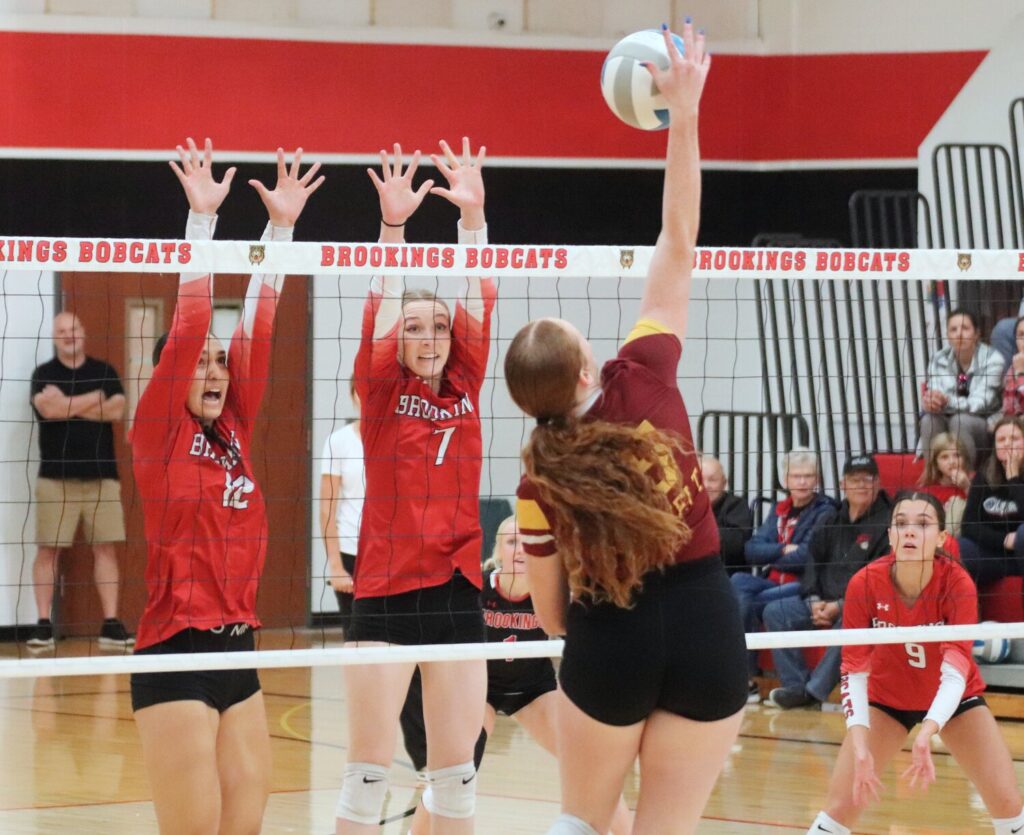 While the Bobcats didnt win the first set, they carried the momentum into the second. Brookings led 15-10 in the early going before Roosevelt scored four straight points to cut the lead to 15-14 but the Bobcats held off the Riders to win the second set 25-20.