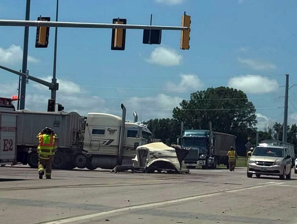 The incident occurred at 1:34 p.m. at the intersection of Caspian Avenue and U.S. Highway 14, according to a Monday news release from the Brookings County Sheriffs Office. The vehicles and their drivers were Sergei Penrod-Curtis, 37, of Brookings driving a 2008 Peterbilt with an enclosed trailer, and Charles Schoellerman, 18, of Beresford driving a 1994 Peterbilt with an enclosed trailer.