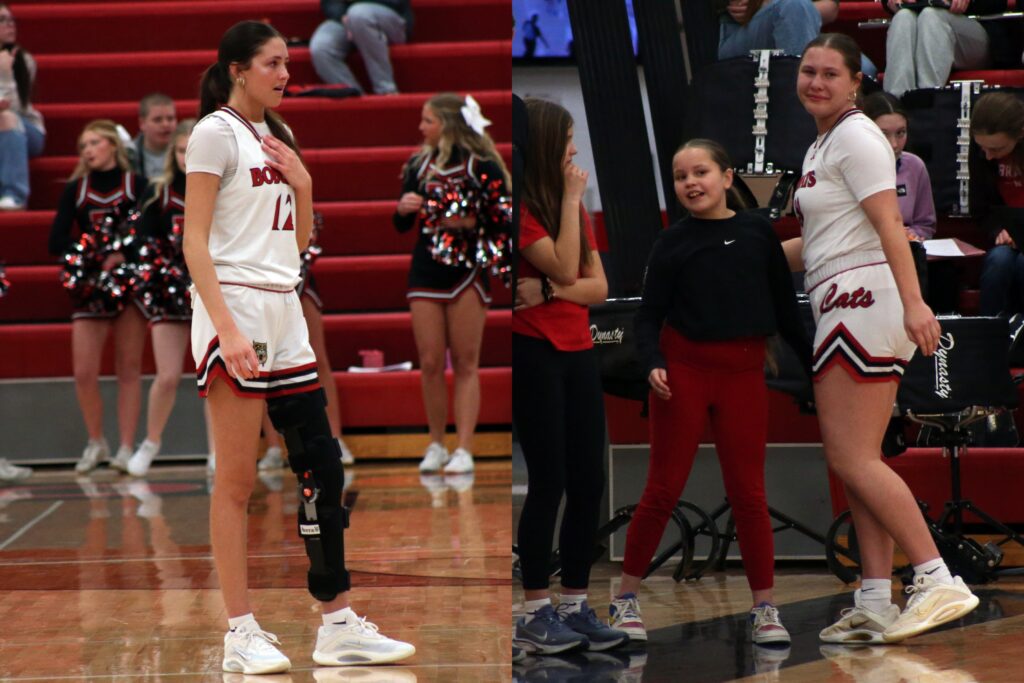 The Bobcats did have a nice moment at the beginning of the game. Seniors Macy Even and Clara Delbridge were able to start the game despite being both out with injuries. Each team took a foul after the jump ball, which allowed the two to embrace their teammates and coaches as they walked off the floor.